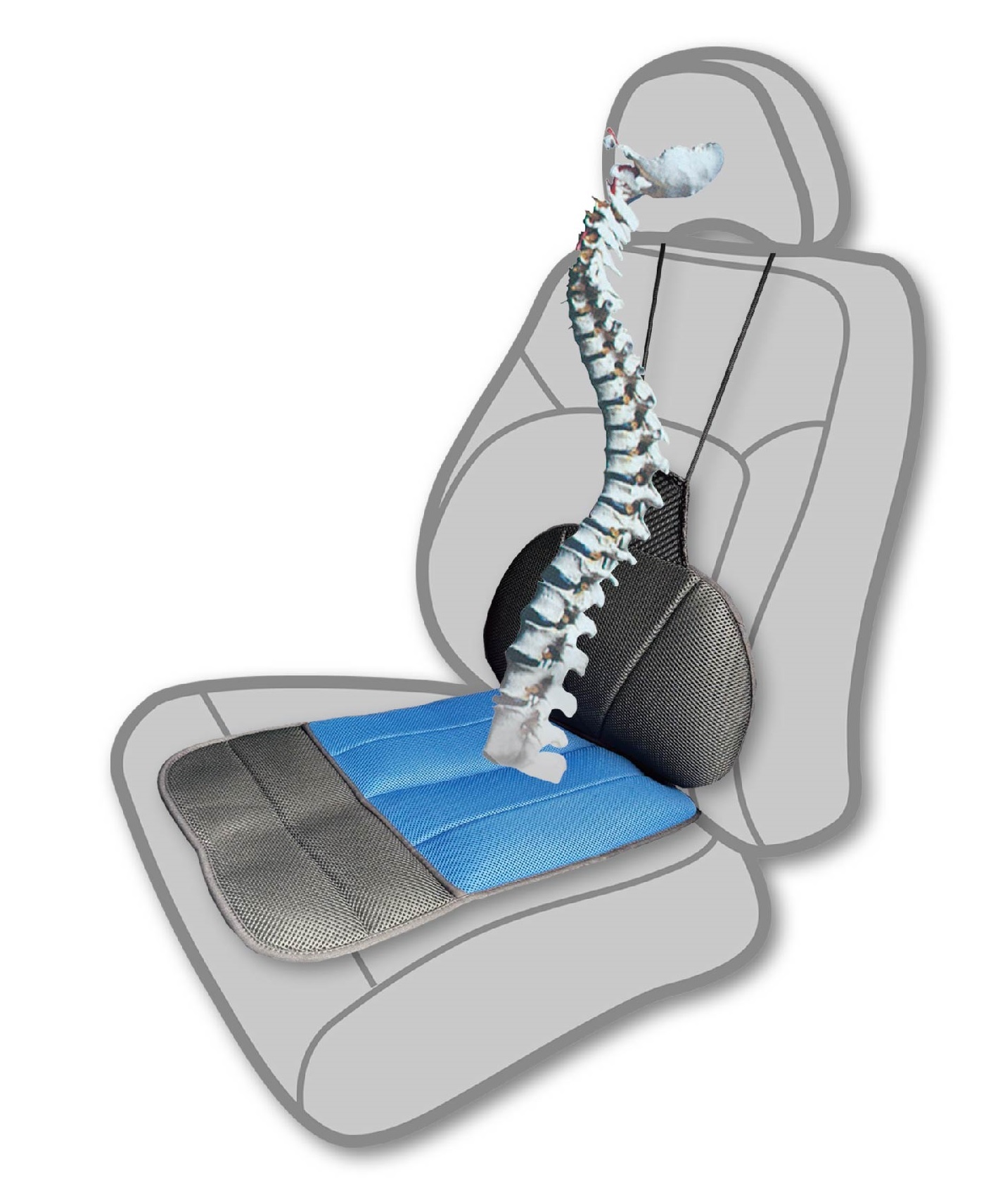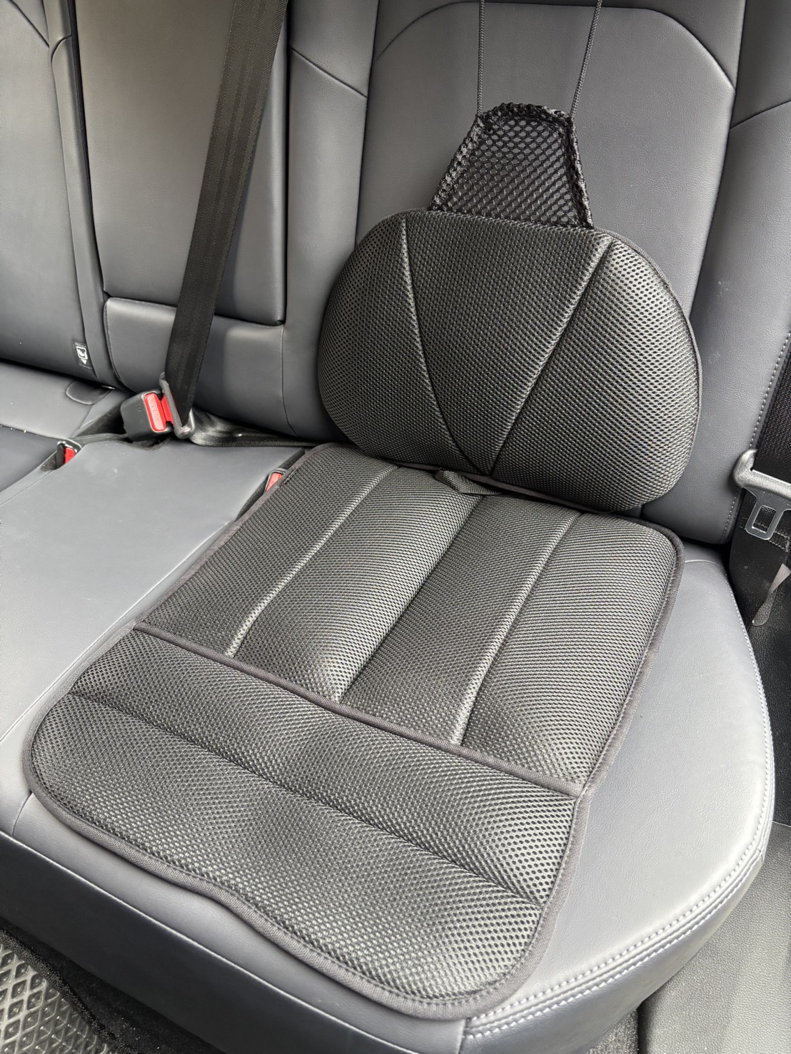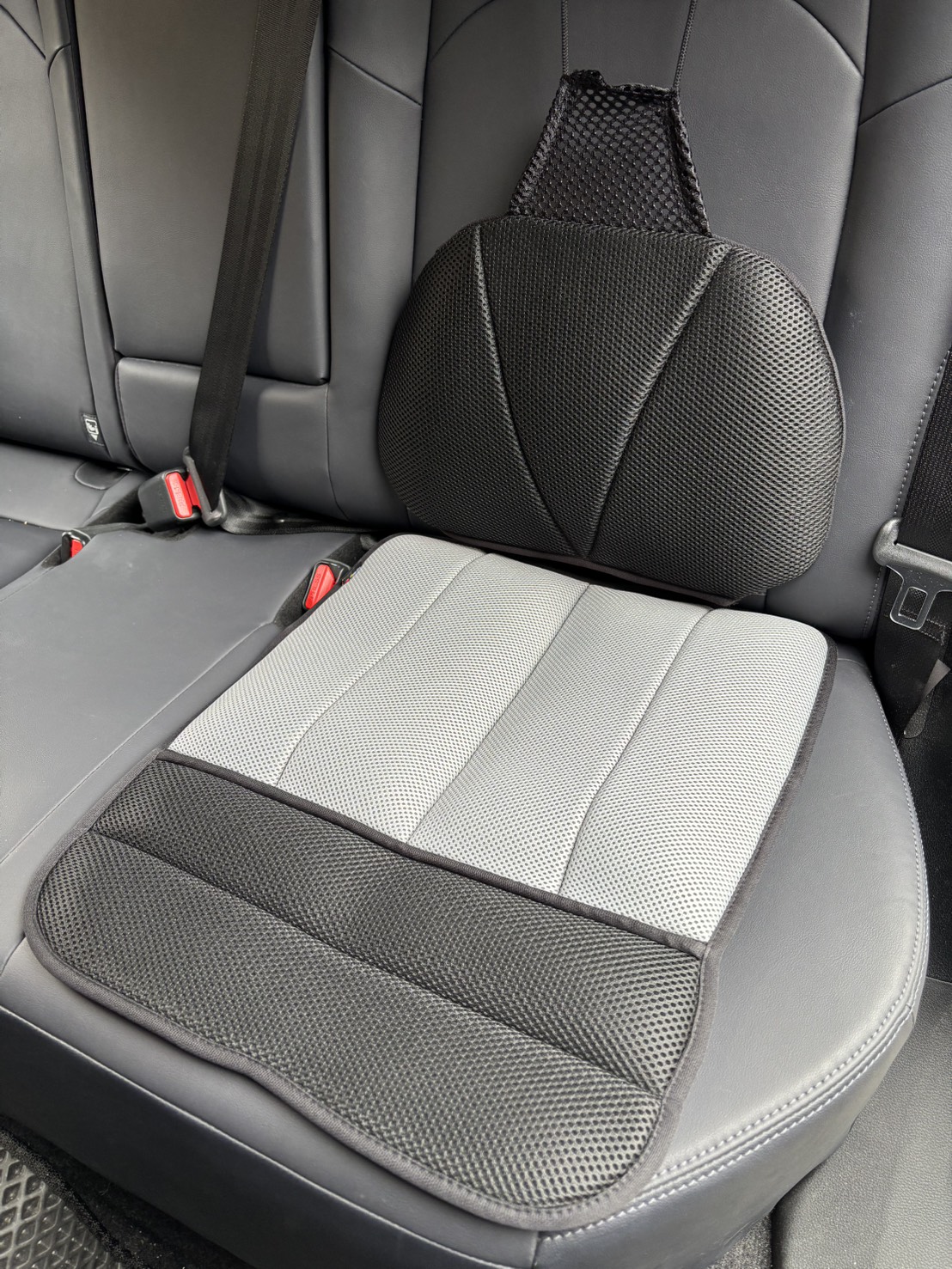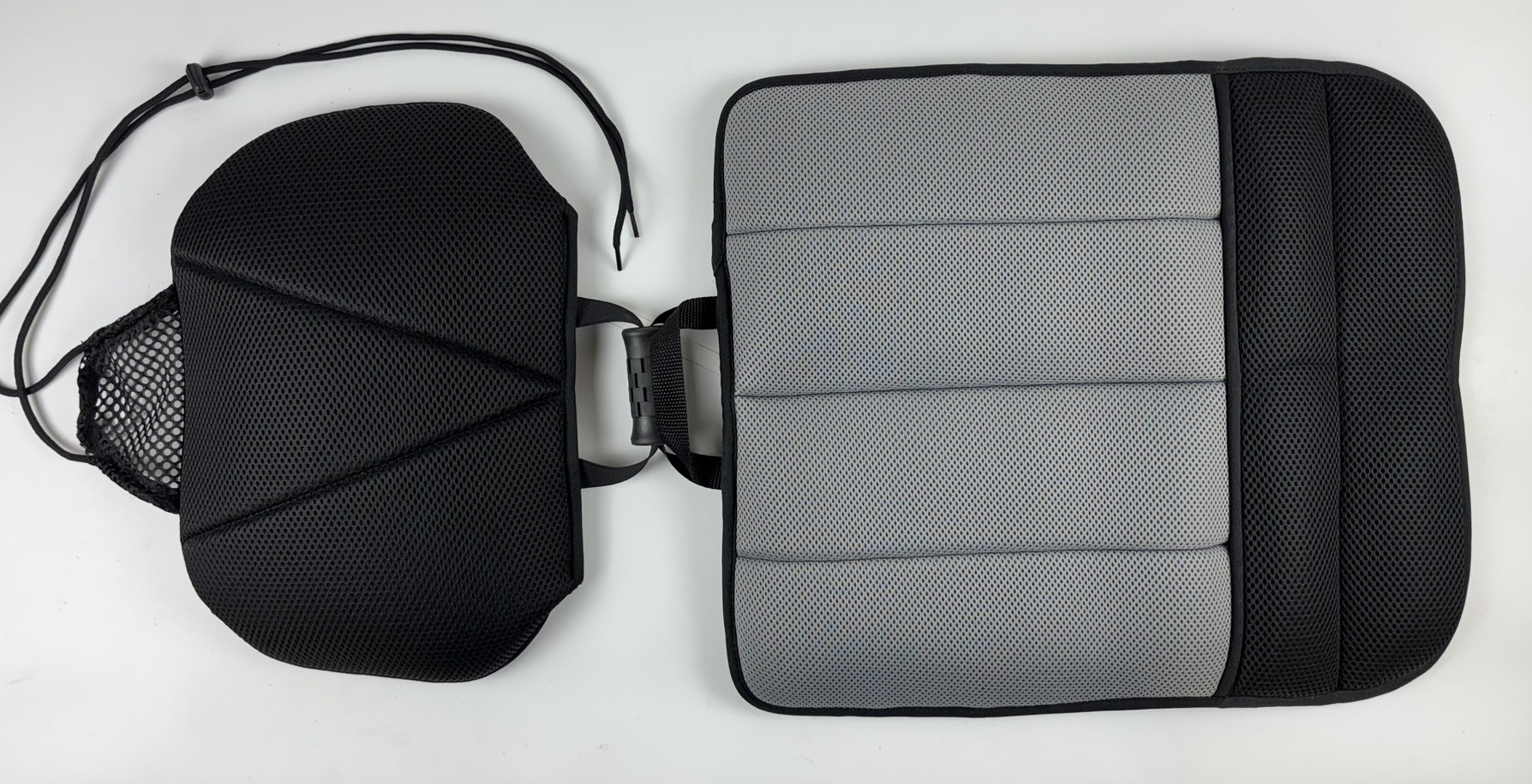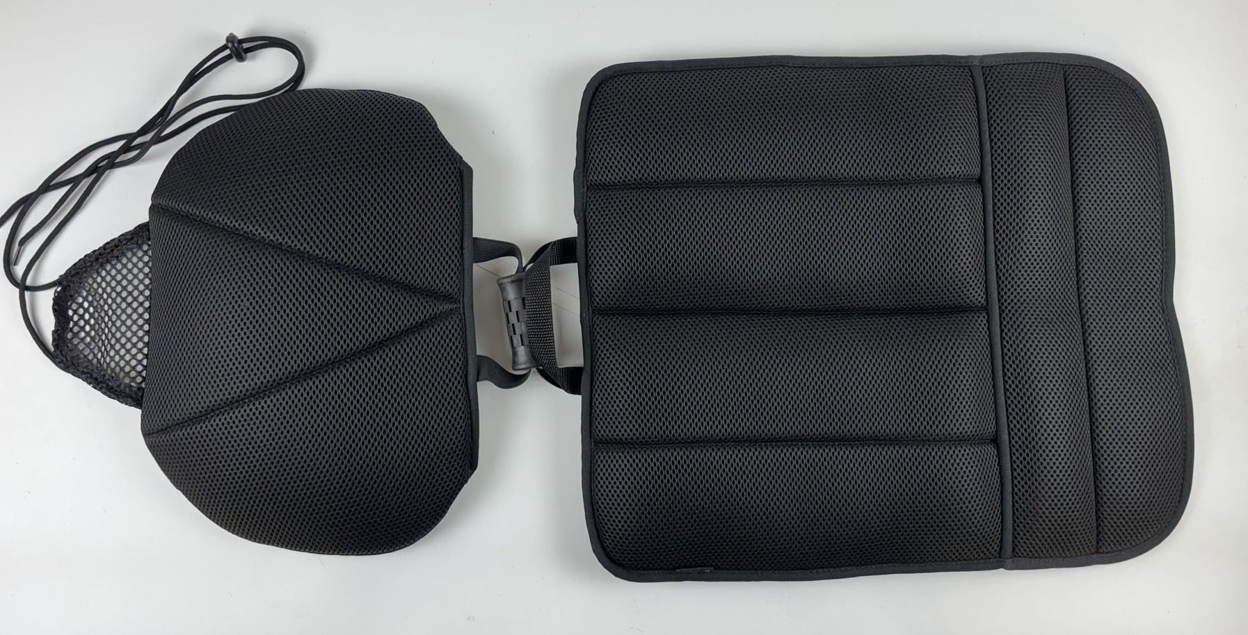 High technology TPU air cushion with valve (FCA-115-20V) x 2 PCs on back for adjust seating pressure and black color Sandwich mesh with (FCA-106) x 2 PCs on front for breathe and Non-slip design to set up for one seat.