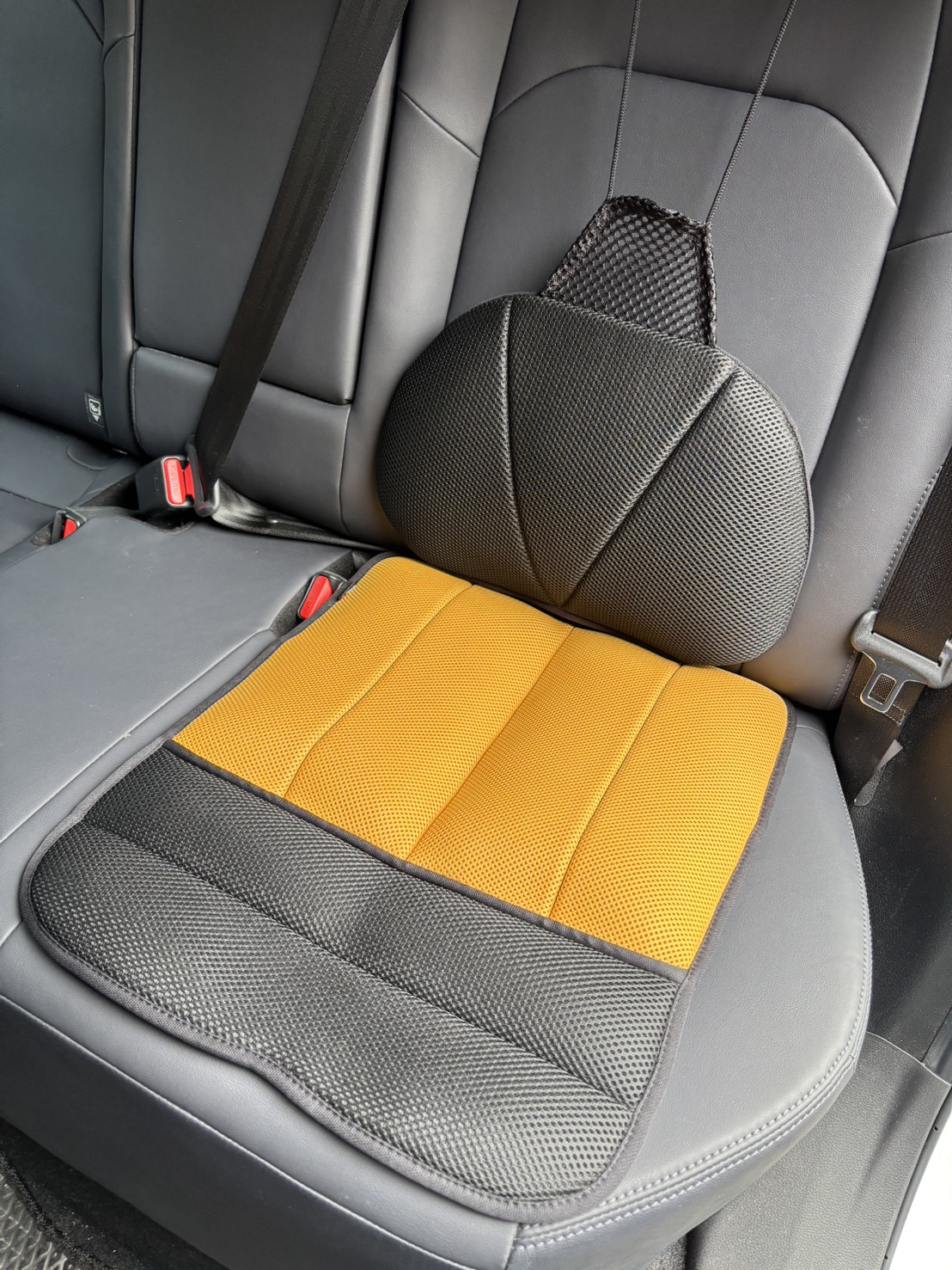 High technology TPU air cushion with valve (FCA-115-20V) x 2 PCs on back for adjust seating pressure and black color Sandwich mesh with (FCA-106) x 2 PCs on front for breathe and Non-slip design to set up for one seat.